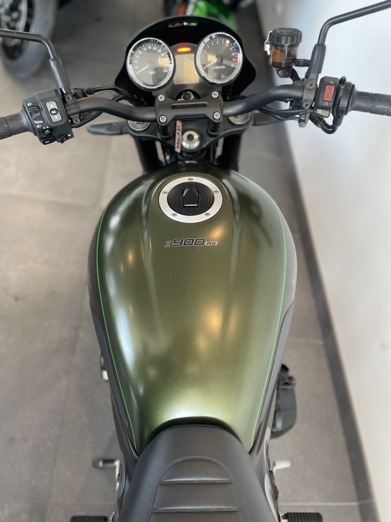 La Z 900 RS se distingue immédiatement par son look unique, alliant lignes rétro et modernité. Le design inspiré de la célèbre Kawasaki Z1 des années 70, avec ses couleurs vives et son réservoir sculpté, vous séduira par son caractère et son authenticité. C’est une moto qui ne passe pas inaperçue, que ce soit en ville ou sur les routes sinueuses.
