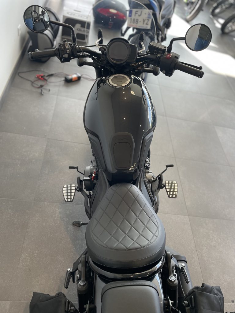 La HONDA CMX Rebel propose une instrumentation LCD rétroéclairée de 100 mm de diamètre, offrant une lisibilité optimale en toutes conditions. Les équipements de série incluent des phares à LED, des feux de jour, un feu arrière LED, une jauge à essence, une horloge et un compteur journalier